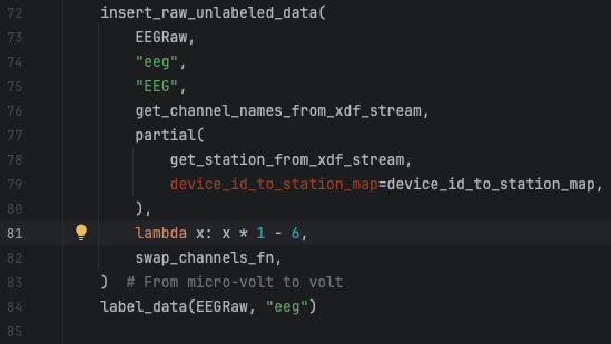This is a real example of a change I needed to do in the raw EEG signals that were being converted to microvolt before persisted in the table eeg_raw. So, to fix this, I need to remove that conversion from the code and repopulate the eeg_raw and eeg_sync tables to reflect the unconverted values. The eeg_sync table entries need to be repopulated too because its content is derived from the entries in the eeg_raw table.